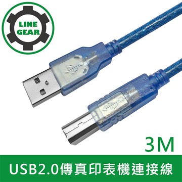 LineGear 3M 2入組USB 2.0 A公對B公傳輸線 傳真機印表機連接線-透藍