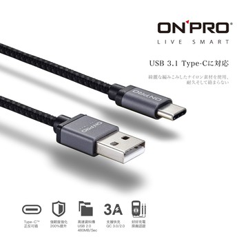 ONPRO 3A 傳輸快充線 USB-A - USB-C UC-TCM12M 1.2m 黑色 1條