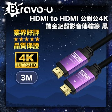Bravo-u HDMI to HDMI 公對公4K鍍金鋁殼影音傳輸線 黑/3M