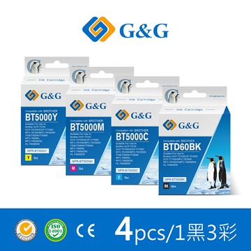 【G&G】for BROTHER 1黑3彩 BTD60BK/BT5000C/BT5000M/BT5000Y相容連供墨水 /適用DCP-T310/T510W