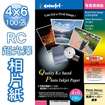 Color Jet 日本進口 優質RC超光澤相片紙 4X6 265磅 100張