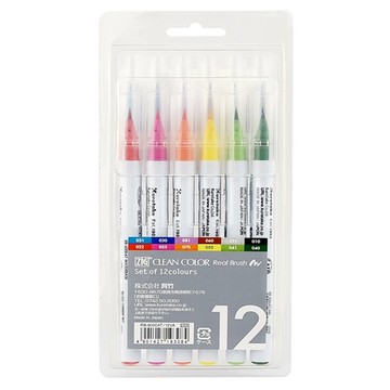 日本吳竹KuretakeあかしやZIG CLEAN COLOR彩繪毛筆畫筆RB-6000AT/12VA色紙筆簽名板筆簽名筆(12色水性顏料;彈性刷毛)real brush