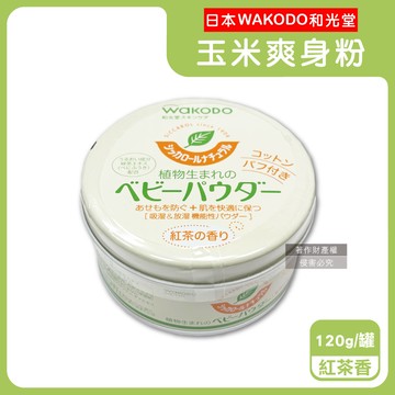 日本WAKODO和光堂-玉米澱粉植萃滋潤吸濕爽身粉-紅茶香120g/罐