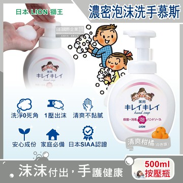 點我下載日本LION獅王-趣淨植萃濃密泡沫洗手慕斯-清爽柑橘(白色頭)500ml/按壓瓶(綿密柔軟泡泡洗手乳)