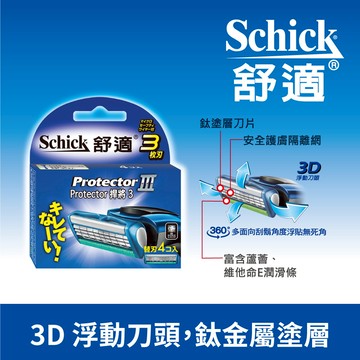 【Schick 舒適牌】捍將3刮鬍刀片4入