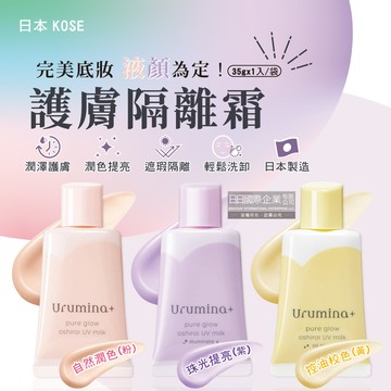 (2袋超值組)日本KOSE高絲-Urumina+晨間潤澤乳液防護肌膚隔離霜35gx1入/袋(護膚亮澤美容液,美肌素顏霜,妝前防護乳,控油粉底液,潤色遮瑕膏)