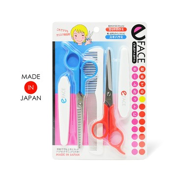 kiret 日本專業剪髮套組 平剪 + 瀏海剪 + 打薄刀 + 半身理髮巾 顏色隨機 1組