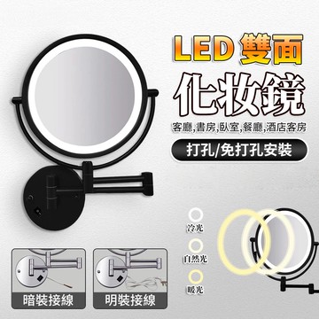 LED化妝鏡 8英吋浴室鏡 全光譜帶燈梳妝鏡子 折疊掛鏡 衛生間鏡子 放大美妝鏡 雙面補妝鏡 三色光源