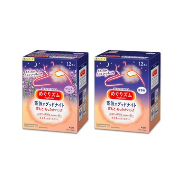 (2盒24片超值組)日本KAO花王-約40°C蒸氣睡前溫感肩頸熱敷貼片12片/盒-薰衣草香(長效約30分鐘,晚安蒸氣貼,就寢前溫熱貼片,放鬆溫暖頸部)