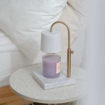 【HOOOME】可定時+可調光 香氛蠟燭暖燈 融蠟燈 禮盒包裝 - 可調升降大理石款 (白色)