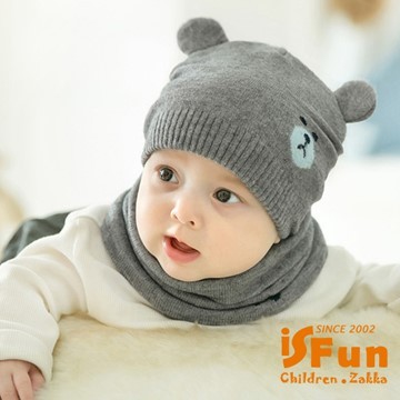 iSFun 安眠小熊 嬰兒雙色棉帽+三角領巾組 3色可選