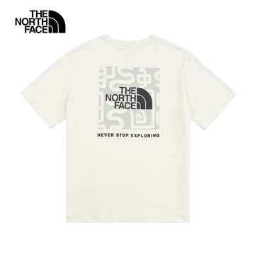 【The North Face 官方旗艦】北面男女款米白色純棉大尺寸迷彩LOGO印花短袖T恤|8AT6QLI
