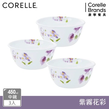 【美國康寧 CORELLE】紫霧花彩450ml中式碗三入組