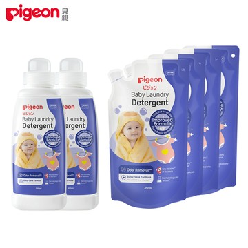 日本《Pigeon 貝親》嬰兒洗衣精【500ml罐裝x2+450ml補充包x4】