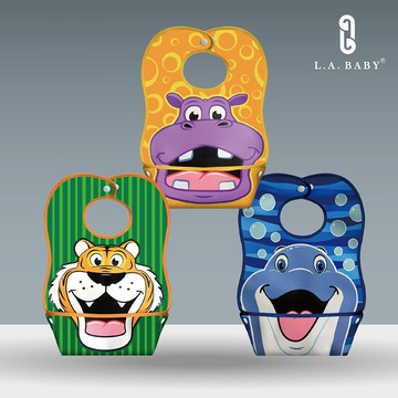 【L.A. Baby】防水立體寬口袋圍兜 超值3入組(多款可選)