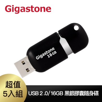 Gigastone U207S 16GB USB2.0 膠囊隨身碟 (黑銀) 5入組