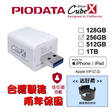 PIODATA iXflash Lightning / USB C 1TB 蘋果 APPLE MFi認證 iPhone / iPad 備份 OTG USB 3.2 雙頭 加密 行動隨身碟 -煙燻粉霧藍