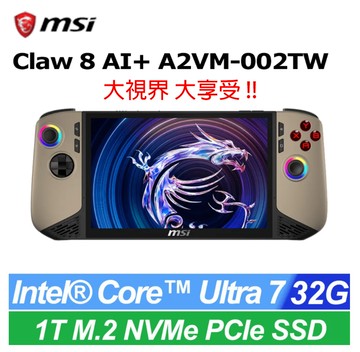 MSI Claw 8 AI+ 掌上型 mini AI PC(Intel Core Ultra 7 258V/32G/1T SSD/W11/A2VM-002TW)