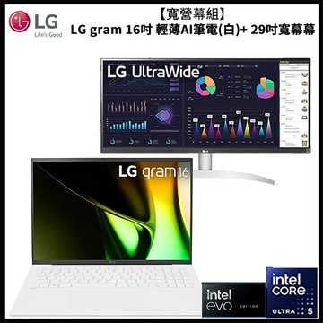 點我下載【寬螢幕組】LG gram 16吋冰雪白16Z90S-G.AA54C2 + LG 29吋 UltraWide IPS螢幕