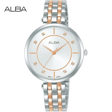 ALBA 雅柏 簡約時尚晶鑽腕錶/銀X玫瑰金/32mm (Y121-X160KS/ARX078X1)