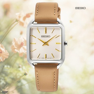 SEIKO 精工 CS系列優雅時尚方形腕錶/米X卡其/26mm (4N30-00L0P/SWR089P1)
