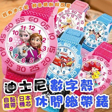 DF童趣館 - 迪士尼日本品牌機芯數字殼休閒織帶兒童手錶-共5色