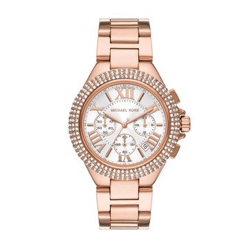 MICHAEL KORS Camille 三鑽圈羅馬數字三眼玫瑰金腕錶MK6995