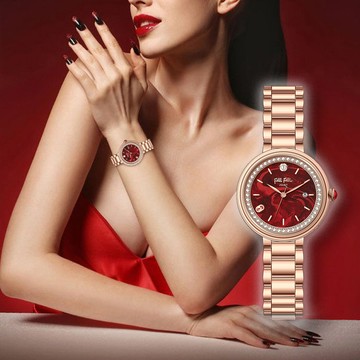 【Ogival 愛其華】山茶花系列 復古紅時尚珠寶錶 (305-11DLR) 紅珠白面