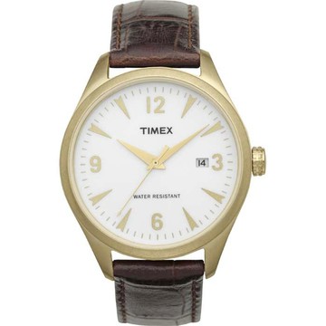 TIMEX 革新經典三針日期腕錶-白x金框