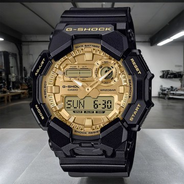 CASIO 卡西歐 G-SHOCK 經典黑金 10年電力雙顯手錶 學生錶(GA-010GGB-1A9)
