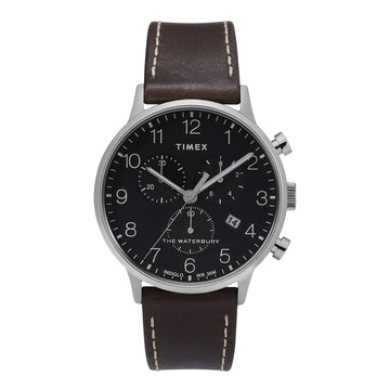 TIMEX 定律吸引三眼計時皮帶腕錶-黑X咖啡