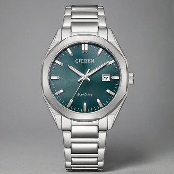 CITIZEN 星辰 限量 光動能八角形經典大三針手錶-銀x綠/38mm(BM7620-83X)