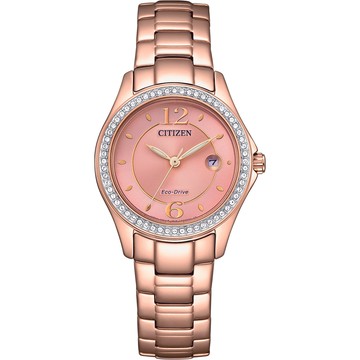 送禮首選★CITIZEN 星辰 母親節推薦款光動能水晶奢華女錶-粉x金 FE1253-80X 附提袋【全館優惠★APP下單天天點數10倍送】線上購買享_實體門市同步服務