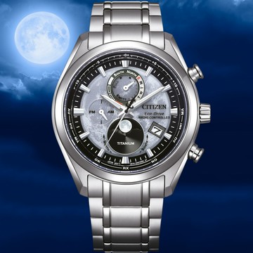 CITIZEN 星辰錶 月相錶 光動能錶 電波錶 計時鈦金屬手錶 男錶 指針錶-43mm BY1010-81X