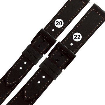 Watchband / 20.22 mm /各品牌通用 經典復刻 黑鋼扣 外層真皮 內層橡膠錶帶 黑色#858-318-BK