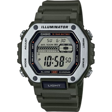 CASIO 卡西歐 10年電力金屬風計時手錶-綠 MWD-110H-3AV