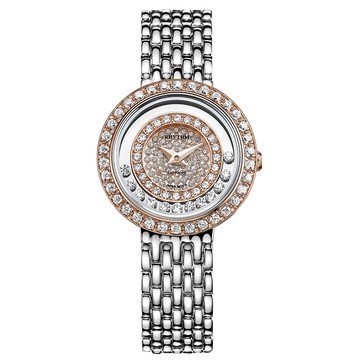 RHYTHM日本麗聲 奢華貴氣淑女造型鑲鑽設計石英腕錶-玫瑰金/30.5mm