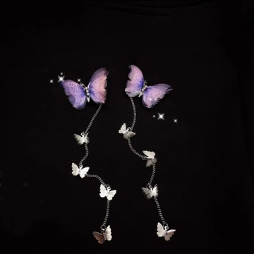 【RJ New York】夢幻漸層網紗蝴蝶女款流蘇髮夾(紫色一對)