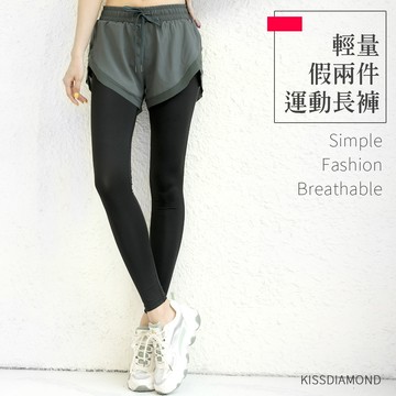 【KISSDIAMOND】輕量假兩件休閒運動長褲(瑜珈/真理褲/健身/KDP-2212)