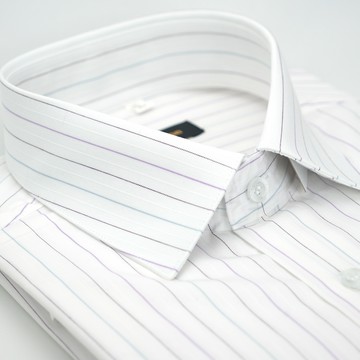【金安德森】白底黑紫綠條紋窄版襯衫-長袖(轉)