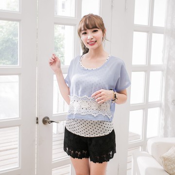 【EE-LADY】短版雪紡織花下襬X點點背心上衣