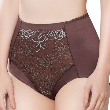 思薇爾 撩波芙蓉光影系列M-XXL蕾絲高腰三角飾體褲(栗子棕)
