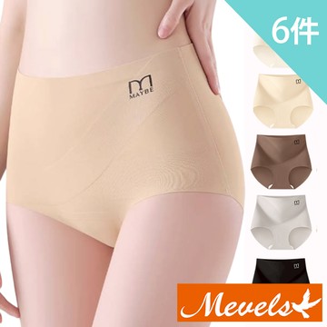 Mevels瑪薇絲-6件組 10A交叉微壓收腹無痕高腰內褲/無痕內褲/蠶絲底襠/女內褲/冰絲內褲/瑜珈內褲(L-XXL)