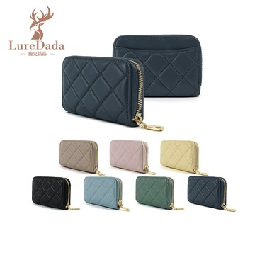 立刻下載【Luredada鹿兒搭搭】真皮菱格紋零錢包 拉鍊零錢包 女用零錢包 信用卡收納 送禮首選 交換禮物推薦