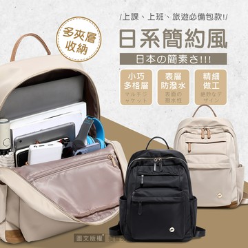 日系雙色百搭款 14.4吋 多隔層好收納 獨立筆電層 手提肩背休閒後背包