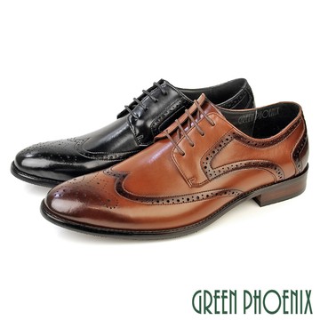 【GREEN PHOENIX】男 紳士鞋 商務皮鞋 學生鞋 新郎鞋 德比鞋 真皮 翼紋雕花 牛津 防潑水T59-1S893