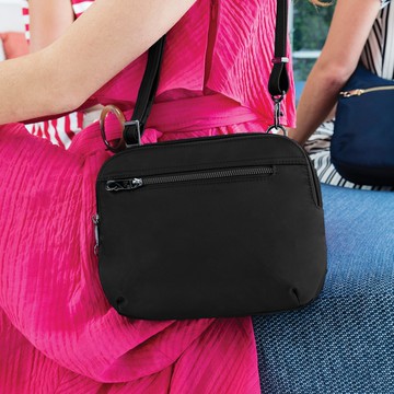 美國 TRAVELON | Tailored 3層隨身防盜斜背包(黑) | RFID 單肩包