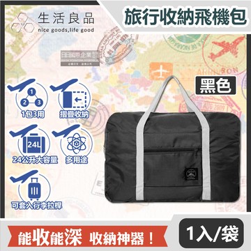 【Travel Season】韓版超大容量摺疊旅行袋飛機包-黑色(容量24公升 旅行箱/登機箱/收納盒/收納包)