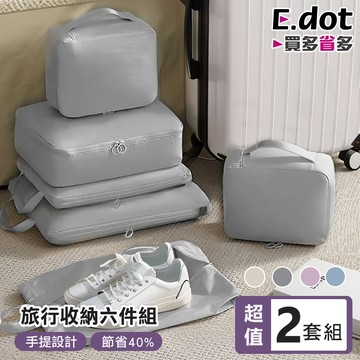 【E.dot】6件組旅行收納袋 -2套組 (壓縮收納袋 / 鞋袋)