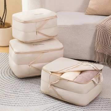 Branden 第二代旅行用體積縮小衣物壓縮袋組 淺米色 S